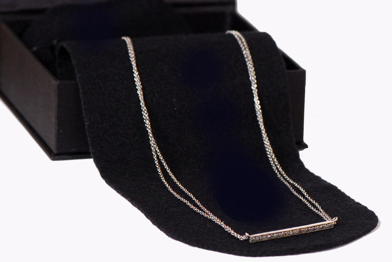 This timeless Chan Luu diamond necklace is the perfect accessory for a chic and elegant touch to your daily look. This handcrafted style features a 0.19 -carat pave Diamond bar pendant suspending vertically from two strands of sterling silver chains. Enhance the look of other necklaces with this classic style or wear alone for a subtle touch of glimmer. Sterling silver Chan Luu initial clasp closure Measures approximately 16" in length Pendant measures 1 1/4" wide Handcrafted in the USA