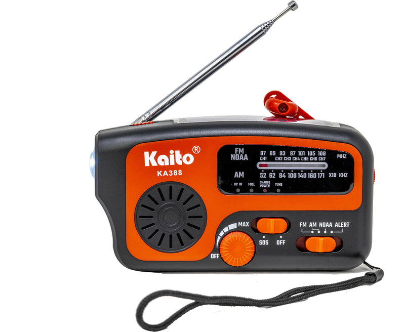 AM, FM, and National Weather Service bands. NOAA 24/7 local weather in all 50 states and 1000 counties. Built in bright LED flashlight with 1-touch on/off. SOS emergency beacon light and siren. USB-C output Cell Phone Charger. Powered by hand crank, solar panel, 3x AAA batteries, Built-in Li-ion battery. Weather Alert for instant power alert in emergencies. Water-resistant and Splash-proof rubberized casing. Compact and lightweight. Dynamic speaker for clear, crisp sound.