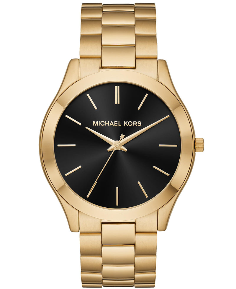 Michael Kors Mens Slim Runway Gold-Tone Stainless Steel Watch Black Dial