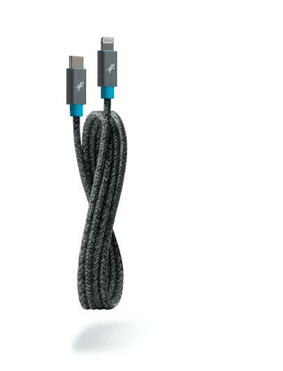 1M,Type-C Charge to Lightning (Apple) PD Fast Charge 4.0, 420 mbps Transfer Cable features knit fabric derived from 100% recycled water bottles. Recycled aluminum cable heads Type-C & Lightning Available (MFi Certified.)