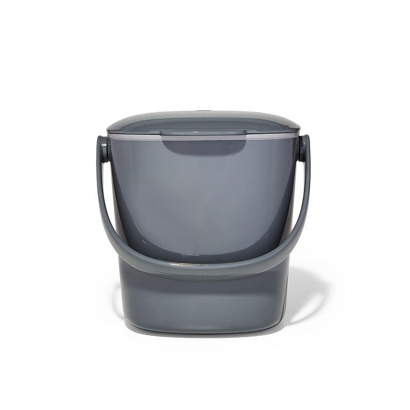 The Easy-Clean Compost Bin has a unique design provides a neat look by keeps bags tucked inside. Odor-containing and pest reducing since oxygen can flow through the soft close lid. Stay-open lid makes it easy to toss scraps in while working. Removable lid for easy emptying. Smooth interior walls prevent build up and makes bin easy to clean. Rotating handle for easy transport of waste to outdoor. Dishwasher safe. 1.75-Gallon/ 6.62-Liter capacity.