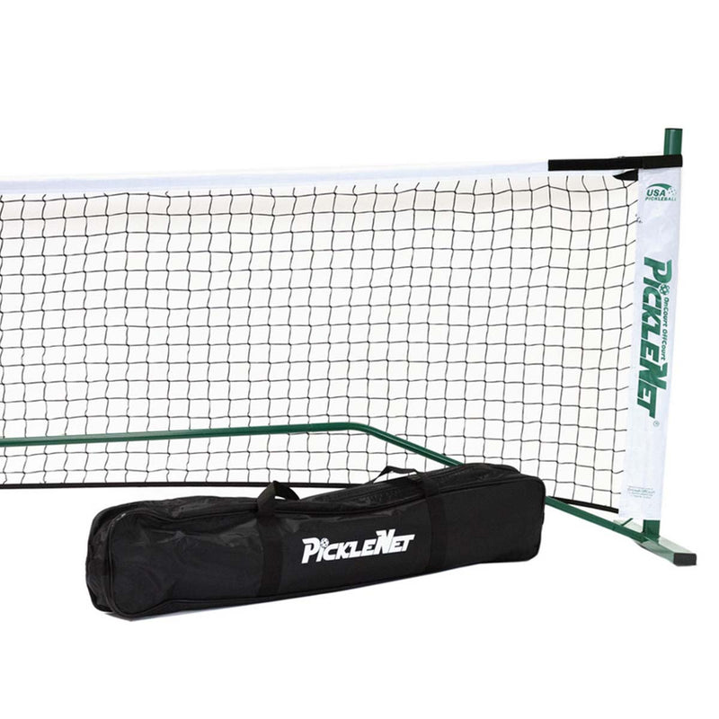 The PickleNet Portable Pickleball Net System is made with a top quality design that uses oval tubing, similar to the Rally Portable Pickleball Net System. This provides a high level of stability and durability in the net's structure, preventing sagging or twisting of the tubes. This system is regulation size and height, measuring 22 feet wide and 34 inches high at the center. A carrying bag is included. The bag holds all the unassembled pieces of the net system and makes for easy transport.