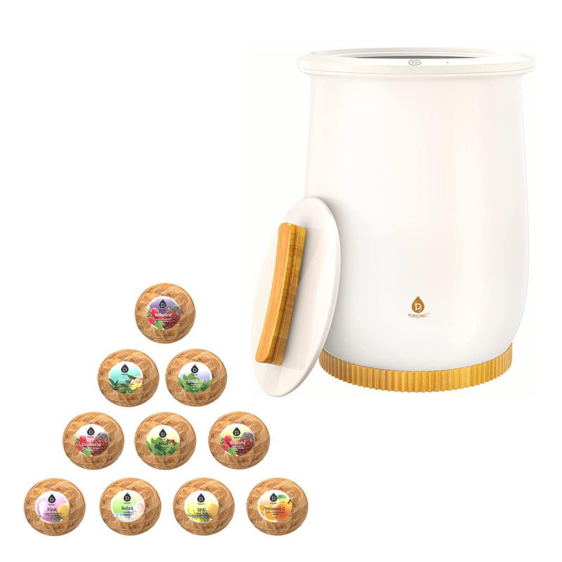 Package includes 10 Pc Handmade, Natural and Organic Bath Bombs (Balance, Pink, Clarity, Relax, Euphoria, Restore, Energy, Spa, Heal and Vitamin C). Each bomb is 4.1 oz. After using your bath bombs for your spa like bath use a towel from the Bucket Style Towel and Blanket Warmer that heats towels in 10 minutes. Simple one-touch control provides up to 60 minutes of heating. Accommodates up to two 40" x 70" towels, bathrobes, blankets, PJs and more.