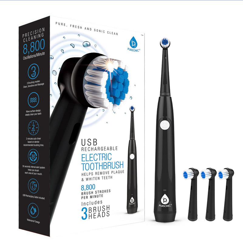 Pursonic USB Rechargeable Rotary Toothbrush - Black