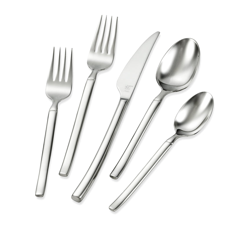 Made from high quality 18/10 Stainless Steel. Optimal combination of 18% Chromium and 10% Nickel offers the best corrosion resistance. Polished mirror finish. Mono-block dinner knife construction for perfect weight and balance. Forged dinner knife blades provide cutting precision. Substantial sizing and heavy gauge weight. Dishwasher safe. Includes: (8) Salad forks. (8) Dinner forks. (8) Dinner spoons. (8) Dinner knives. (8) Teaspoons. Slotted serving spoon. Serving spoon. Serving fork. Butter knife. Sugar spoon.