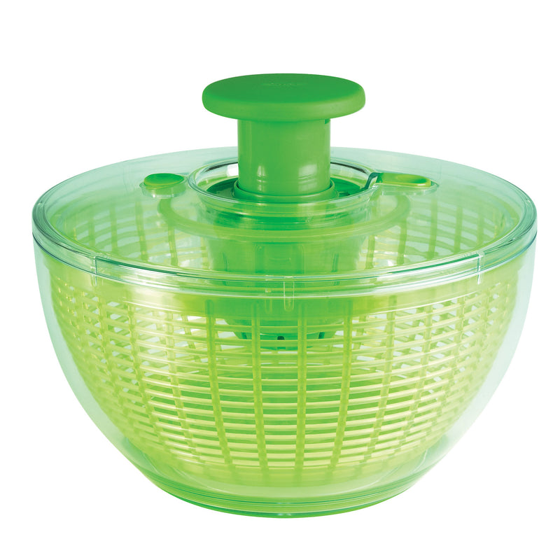 Green One-Handed Operation Patented Pump Mechanism and Brake Button Clear Lid Non-Slip Ring keeps bowl steady on countertop Basket and Non-Slip Bowl can be used separately 6.22 qt. Bowl Capacity 4.95 qt. Basket Capacity Top-Rack Dishwasher Safe