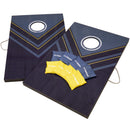 Keep the game going long after the sun sets with the Triumph 2x3 Blue and Yellow LED Cornhole Set. This full set includes two LED 2x3 cornhole boards, three AA batteries and eight all-weather knitted cornhole bags. This set's knitted bags are light and easy to throw, providing hours of fun and feature all-weather filling, ensuring durable outdoor play. Once the party's over, combine the boards with their Velcro fasteners and store the bags inside. Use the convenient carry handle to take this set anywhere from beach to barbecue.