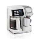 Enjoy the versatility of 3 ways to brew with the Hamilton Beach FlexBrew Trio Coffee Maker. You can brew a single cup with your favorite brand of pod or ground coffee into a cup or travel mug, or brew up to 12 cups with ground coffee in the carafe.