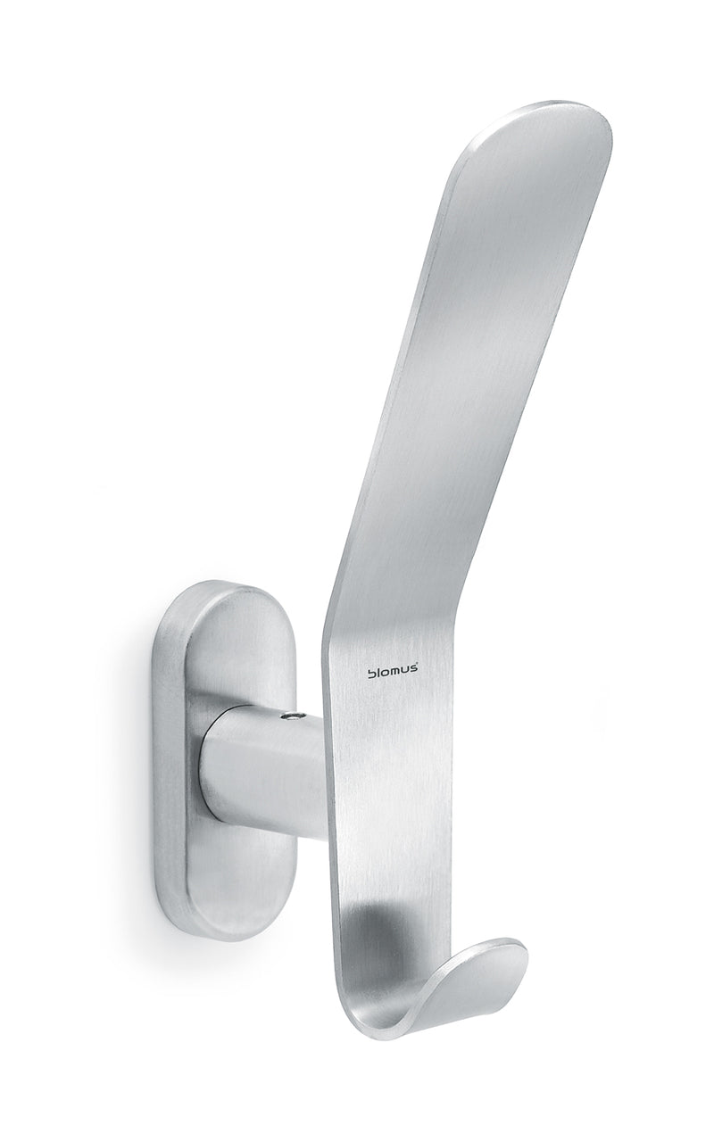 JUSTO - Some objects really have a niche. Jackets, coats, bonnets or caps - they all need a stable support. The Justo Coat Hook designed by Floz Design for Blomus is unique because of its innovative form. It offers a space-saving possibility for hanging coats and jackets, in your hall, bathroom or the children's room. With mounting kit. H 5.5 in. W 1.2 in. D 3 in. and Weight 0.3 lbs.