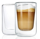 The blomus Nero double walled insulated glasses guarantee stylish enjoyment. These 8 oz glasses areperfect for coffee creations from espresso to latte macchiato. Ice cold desserts such as sorbets, or hot soups can also be presented comfortably without burning or freezing your hands. Hand blown. Suitable for hot or cold beverages. Dishwasher safe. 2 piece set. H 4.49 in. W 2.99 in. D 2.99 in. and Weight 0.66 lbs.