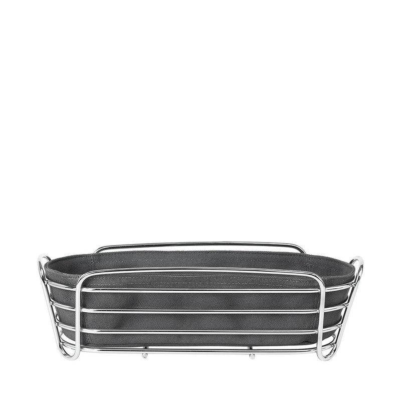 The chrome plated decorative long wire serving basket with taupe insert is both decorative and functional. With a removable fabric liner you can use for more than just serving bread. The fabric insert can be easily removed for washing. Great for serving breads or pastries. Measures 12.25 in x 4.88 in x 3.75 in.
