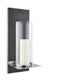 The blomus FINCA wall mounted candle is a beautiful accessory indoors or out. The polystone back accent helps to highlight the white candle which is included in the set. Further, the stainless steel shelf securely holds candle while the large glass shade helps to protect from the wind outdoors. Durable polystone and stainless steel. Includes 1 candle. 7.53 in. H x 8.47 in. W x 20.69 in. L.