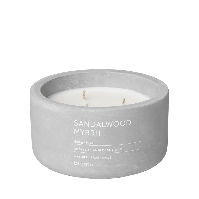 Blomus Scented Candle in Concrete Container - 3 Wick candle features a unique fragrance in a beautifully colored concrete container. Blomus fragrantly enters the scented candle market with a collection of candles with natural scents of fig, sandalwood, sea salt, sage, myrrh and others. The aromatic notes come from the natural world, which means that the room is just ever so subtly and lightly perfumed.