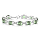 The vibrant beauty of green amethyst and the classic sparkle of diamonds make this sterling silver bracelet a classic addition to any collection. Ten genuine 7mm cushion-cut green amethysts and .10twt diamonds. Length: 7.5"; Secured by a lobster claw clasp