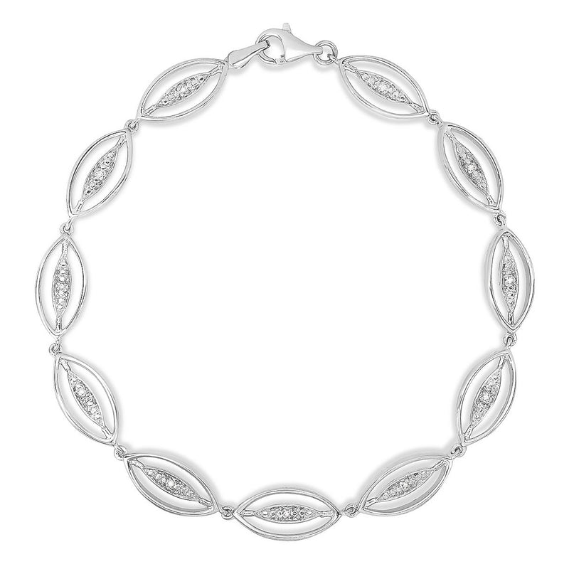 A timeless bracelet with a twist. Open sterling silver oval links intersect with diamond-encrusted bar links to create an eye-catching, leaf-like motif. Contemporary design handmade by Turkish artisans. Matches well with earrings JE677 and 18" necklace JN677. Sterling silver; Length: 7.5"; Clasp Mechanism: lobsterÊ claw clasp; Diamonds: .07twt brilliant round diamonds