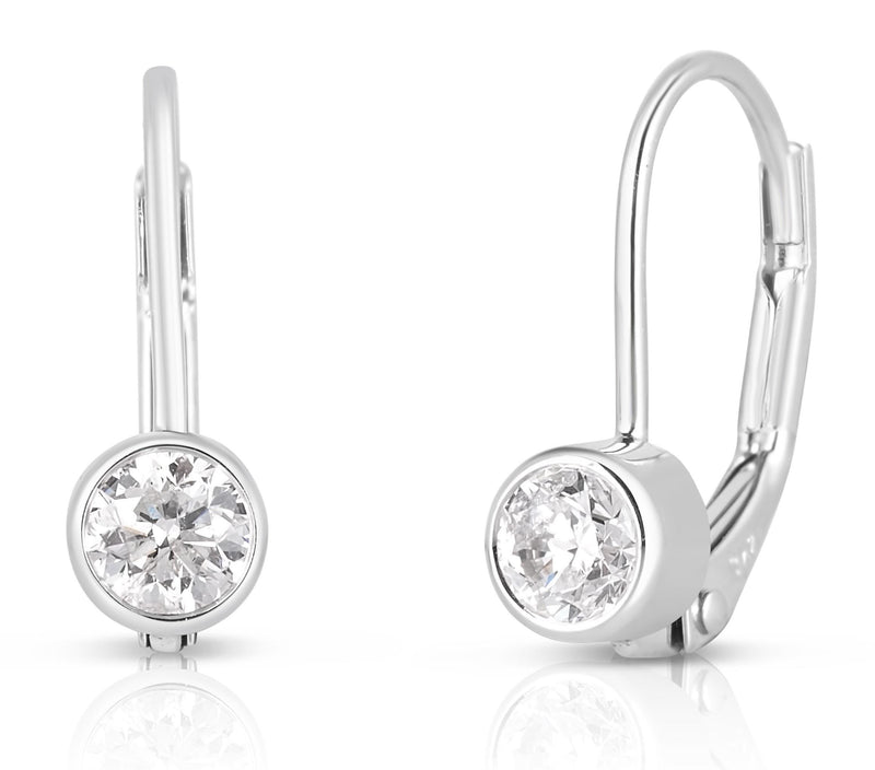 Simple, stunning, and dazzling--like you! These beautiful European lever-back earrings are crafted in 14k white gold with .50twt round brilliant-cut diamonds. Matches well with 18" necklace JBBSP304.