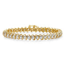 "S" is for style. 14k yellow gold "S" links twirl around each brilliant-cut diamond in this classic tennis bracelet style. 14k yellow gold: Length: 7"; Clasp Mechanism: box clasp with figure-8 safety clasp for added security; Diamonds: 1.50twt round brilliant-cut diamonds