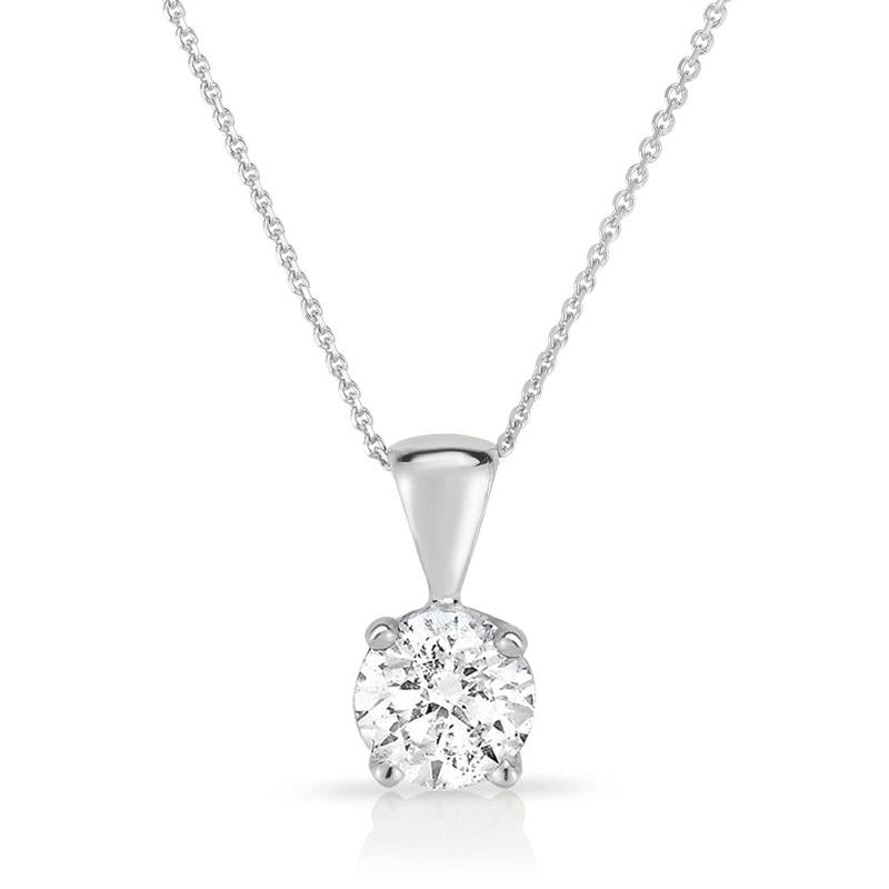 This is a true, timeless essential, through and through. The cable chain necklace is 14k white gold with a beautiful .20ct round brilliant-cut diamond solitaire pendant hand selected for brilliance, quality, and value. A piece you can hold on to forever (to pass on or keep all to yourself). Matches well with earrings JBSE201. 14k white gold; Chain Style: cable chain; Chain Length: 18"; Clasp Mechanism: spring ring clasp; Diamond: .20ct round brilliant-cut diamond