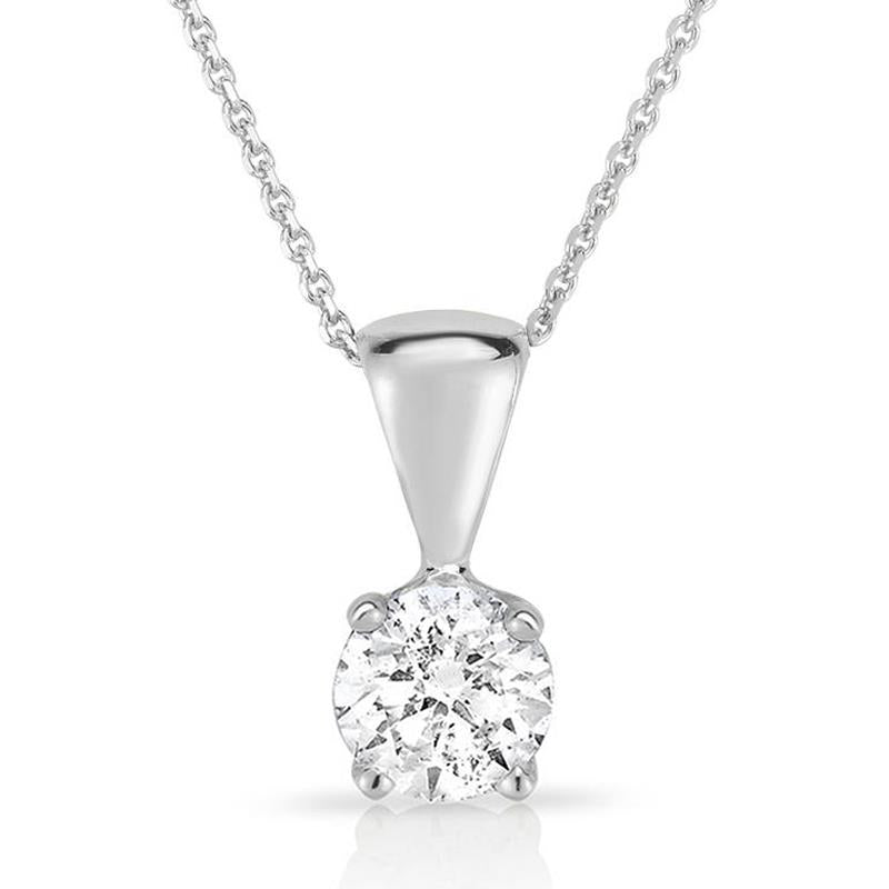 This is a true, timeless essential, through and through. The cable chain necklace is 14k white gold with a beautiful .33ct round brilliant-cut diamond solitaire pendant hand selected for brilliance, quality, and value. A piece you can hold on to forever (to pass on or keep all to yourself). Matches well with earrings JBSE201. 14k white gold; Chain Style: cable chain; Chain Length: 18"; Clasp Mechanism: spring ring clasp; Diamond: .33ct round brilliant-cut diamond