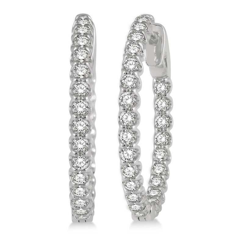 One of the most classic, wear-anytime, wear-anywhere designs, this inside-out hoop is a must-have. These gorgeous 25mm inside-out diamond hoop earrings in 14k white gold are pavŽd inside and out with brilliant-cut diamonds for maximum sparkle. 14k white gold; 1.50twt round brilliant-cut diamonds