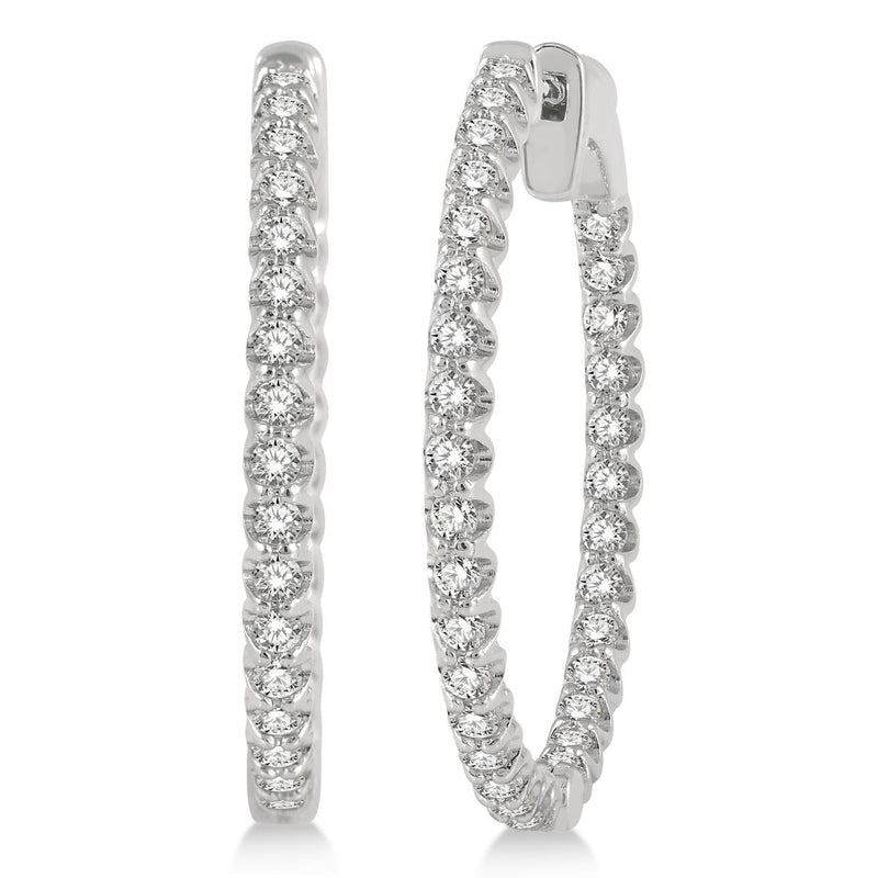 One of the most classic, wear-anytime, wear-anywhere designs, this inside-out hoop is a must-have. These gorgeous 25mm inside-out diamond hoop earrings in 14k white gold are pavŽd inside and out with brilliant-cut diamonds for maximum sparkle. 14k white gold; 1.00twt round brilliant-cut diamonds