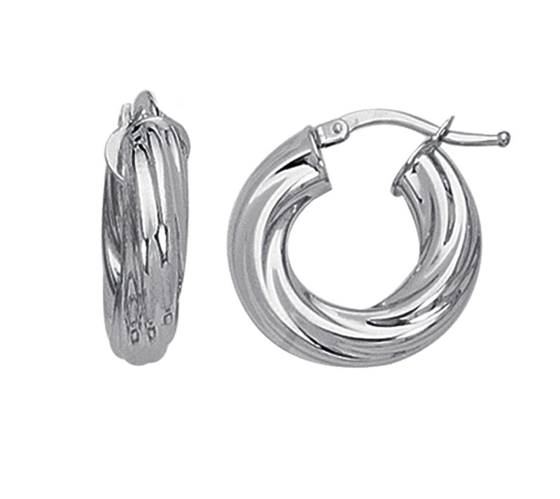 Jilco Inc White Gold Ribbed Hoop Earrings