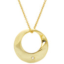 This contemporary silhouette is accented with one round brilliant-cut diamond. Geometric for a 3-D look. .02ct round diamond is set in sterling silver with yellow gold overlay and suspended from a lovely 18" cable chain with a lobster claw clasp. Matches well with earrings JE2069-Y.
