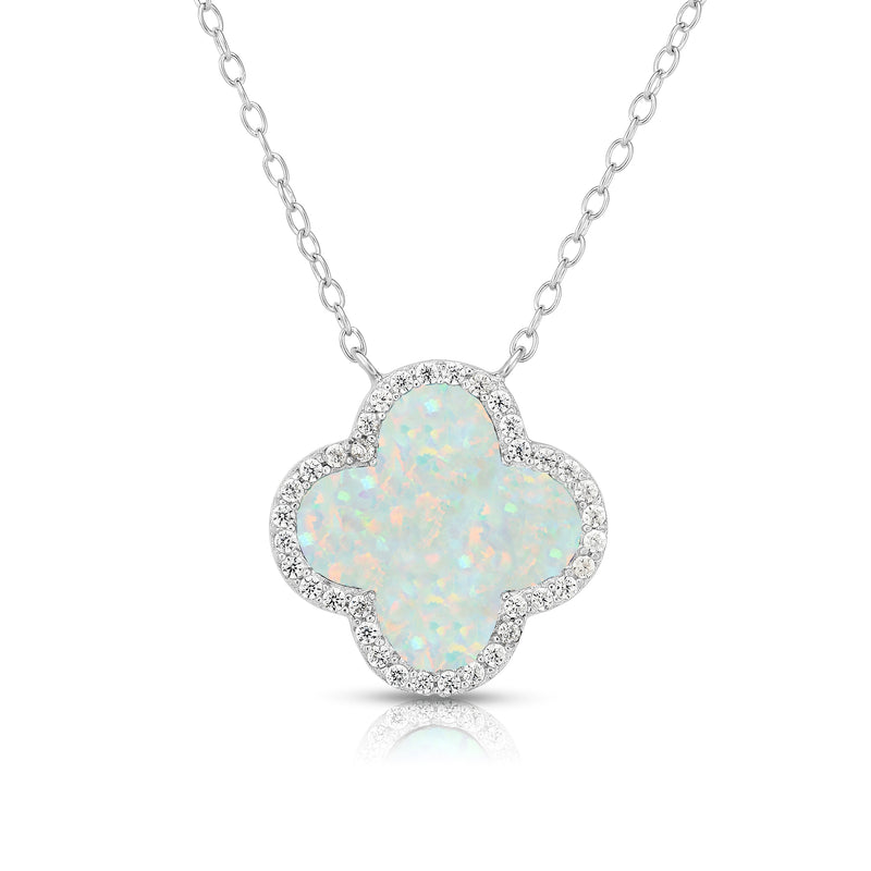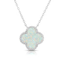 Designer-inspired clover opal pendant with white sapphire accents for added radiance. Effortless style worn alone or layered; Sterling silver