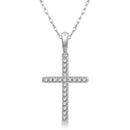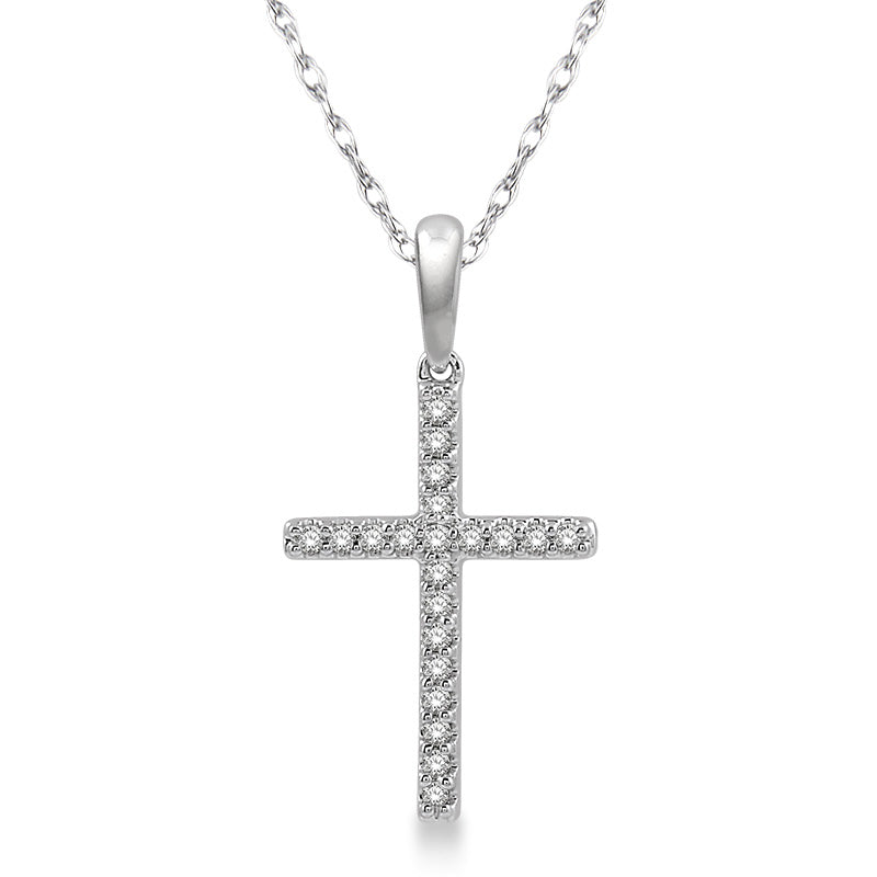 This meaningful, classic cross pendant shines with .10twt prong-set diamonds in 10k white gold suspended from an 18" diamond-cut cable chain. Wear this as a statement alone on your favorite chain or with other treasured symbols. Wear alone for a maximum impact yet clean statement.