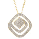 Swirling sterling silver with 14k yellow gold overlay is further complemented by .02twt round diamonds and delicate milgraining that adds even more details to this bold piece. Suspended from an 18" cable chain secured with a spring ring clasp.