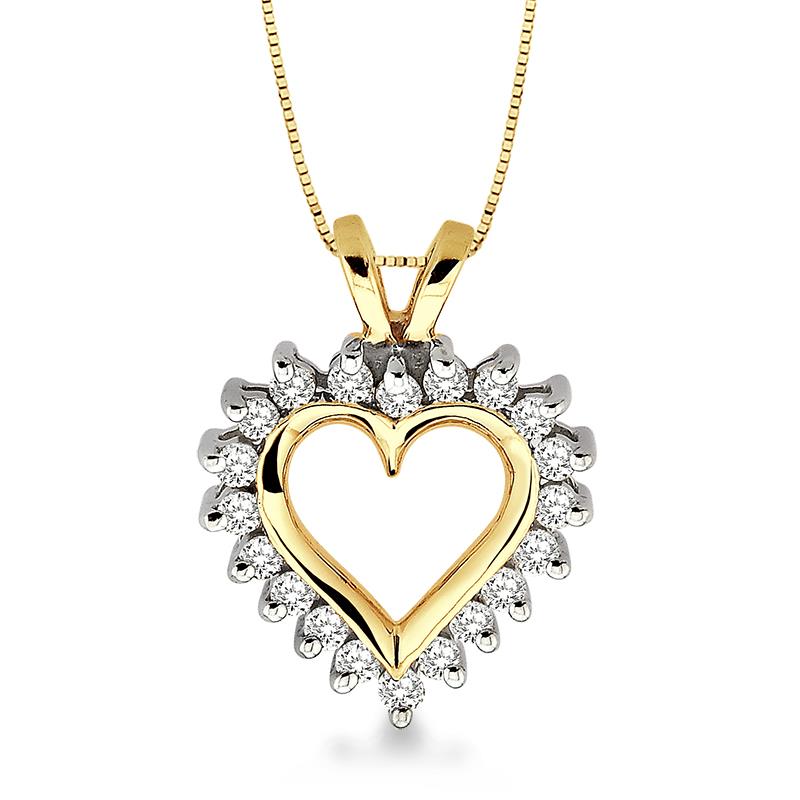 A beautiful reminder to always lead with love. This classic open-space heart pendant necklace shines with .25twt. round brilliant-cut diamonds in high-polished 14k yellow gold. Perfect worn solo, layered with pearls, or a Diamonds by the Yard necklace. Suspended from an 18" cable chain, this is the perfect piece for all occasions.