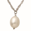The pearl is said to quicken the laws of good karma. Lovely 11mm white freshwater teardrop pearl pendant on a sterling silver 18" Singapore chain.