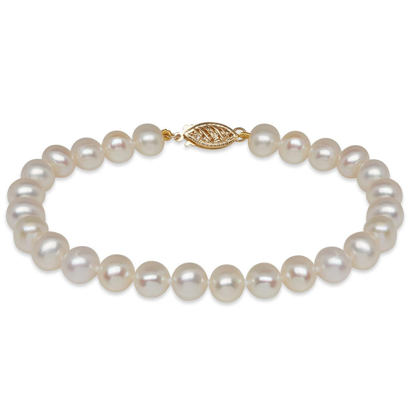 Classic and timeless, this 7" bracelet features a hand-knotted strand of 6-6.5mm cultured pearls that add a touch of sophistication to any look. 14k yellow gold clasp. Matches well with 18" necklace JPRL100-18.