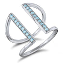 You'll love this unusual and glamorous-style cuff ring. Shimmering blue topaz are set into lustrous sterling silver in this trendy two-row cuff ring style. Playing with positive and negative space, this ring is like nothing else in your jewelry collection. One size fits all and any finger!