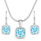 With a single, sparkling cushion blue topaz set in sterling silver, this exquisite, bezel-set pendant is befitting of royalty. Versatile enough for any occasion, this stunning necklace adds an elegant edge to casual or formal wear. 8x8mm cushion-cut amethyst pendant suspended from an 18" round snake chain. Bold yet minimal. Classically chic and effortlessly elegant. These sophisticated sterling silver drop earrings feature genuine 6.5x6.5mm cushion-cut blue topaz set in secure bezel settings. The French wires add comfort and flare.