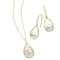 Perfect pearls! A modern twist on a true classic. Cultured freshwater pearl earrings and necklace set with 9mm pearl earrings and a 10mm pearl pendant sitting in high-polished open-work sterling silver with yellow gold overlay teardrop motifs. Suspended from sterling silver drops and an 18" cable chain.