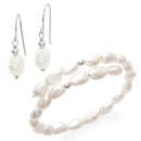 The intrigue and mystery of freshwater pearls make this stunning earring and bracelet set even more beautiful. Natural 7mm freshwater pearls are separated by sterling silver beads, combining to give an updated look to the classic pearl strand bracelet. The bracelet measures 7.5" in length. This set is made complete with 7mm freshwater pearl drop earrings secured to the ears with shepard's hooks. As classic as they come, add these pearl drop earrings to any outfit. A truly sweet and stylish set.