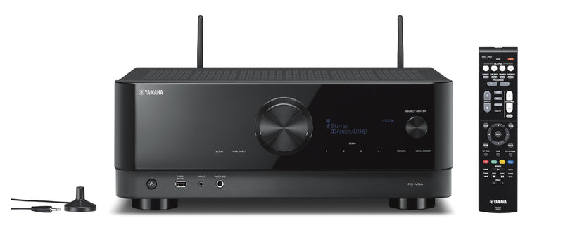 7.2-Channel 100 watt AV receiver. Dolby Atmos. DTS:X. Cinema DSP 3D. Compress Music Enhancer. HDR and HDR10+ - greatly improves contrast. Supports 8K/4K resolutions and higher refresh rate solutions with HDMI. Enhanced media and gaming. AV Setup Guide app. MusicCast - multi-room audio. MusicCast app. Voice control compatible with Alexa Google Assistant or Siri. YPAO automatic room calibration. Built-in Amazon Music Spotify Pandora and more. USB input. 4 Digital audio inputs. Headphone jack. HDMI CEC port. Dimensions: 17.125"W x 6.75"H x 14.875"D.