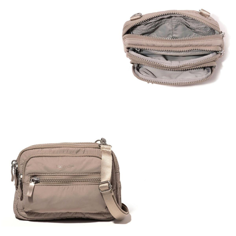 Our most popular everyday bags take center stage in the Legacy collection. The perfectly sized Triple Zip Bagg fits all your daily essentials and quickly converts from a crossbody, to a clutch, to a waist pack (and back again!) to keep you confident wherever you go. Features include: crafted to be clean, 52 inch removable, adjustable crossbody strap, belt loops on back, interior organization and multifunctional pockets, grab and go phone pocket. Measures: 8 in W x 6 in H x 2 in D. Weighs 8 oz.