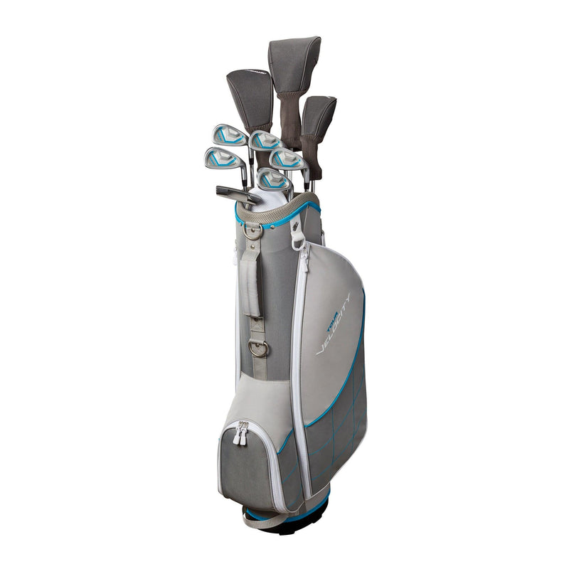 Forged titanium driver with a huge sweet spot and strong loft for easy distance. Fairway wood with graphite shaft. High-launching hybrid is easier to hit than irons. Easy-launching perimeter-weighted irons. Heel-toe weighted putter with alignment aids. Stylish protective head covers. Durable comfortable carry bag with integrated stand and 6-way top.